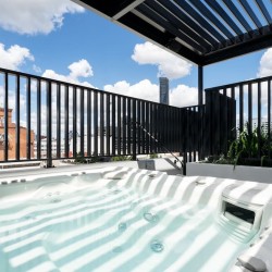 BNB BOOKING presents this luxury Alfred condo. When you enter, you’re welcomed into exceptional & stylistic open-plan living, an abundance of natural light from high ceilings that will take your breath away. An architectural design to be envied, The “Valley” apartment boasts floor to ceiling windows & striking views to the city. If luxury is what you seek, you’ll be in awe of this condo. Rooftop is fitted with a 8 person, heated spa & infrared sauna. Steps to restaurants, bars & 1.5km to CBD.