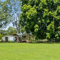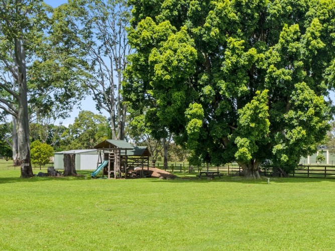 ✅ Fully fenced backyard 1 acre with playground equipment.